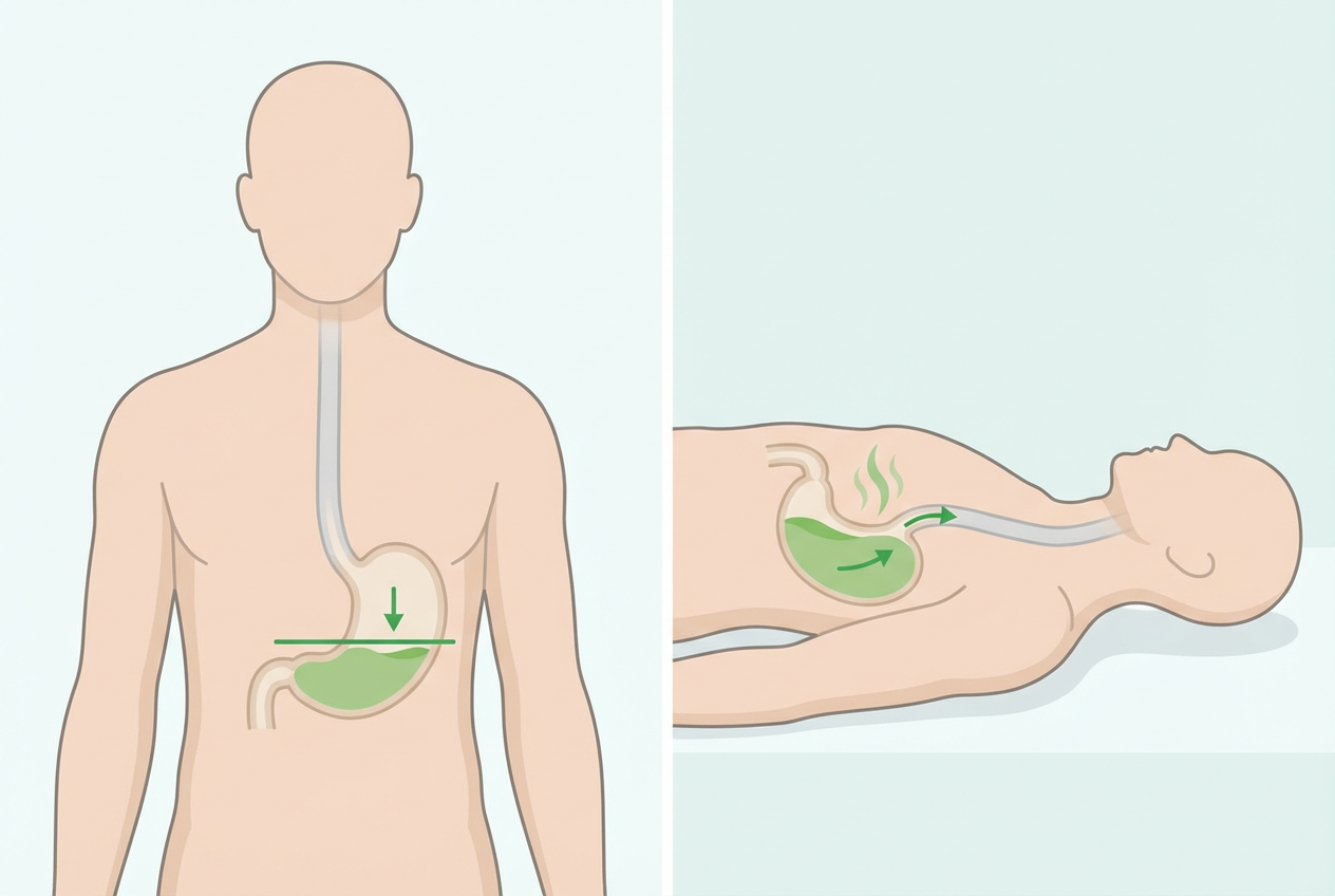 Ganz einfach: Im Liegen fehlt die Schwerkraft – quasi als Bremse, dass die Säure nicht aufsteigen kann.